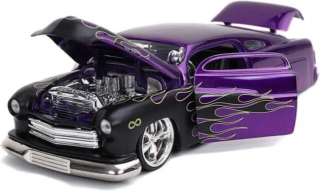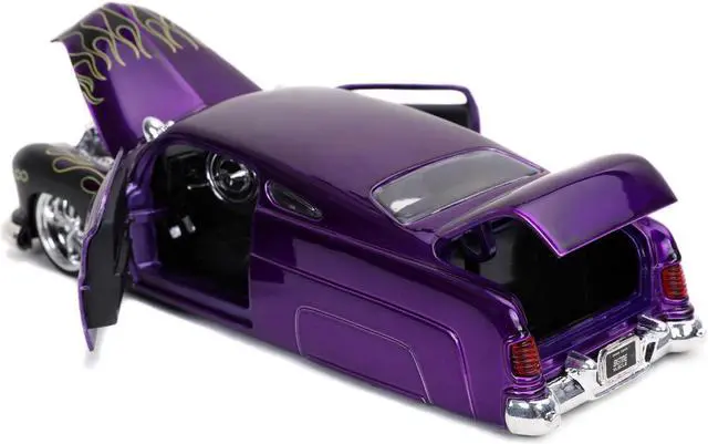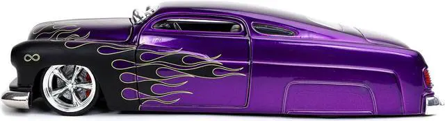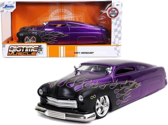 Brand new 1/24 scale diecast car model of 1951 Mercury Purple with Black Flames "Bigtime Muscle" die cast model car by Jada.