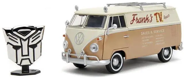 Volkswagen Bus "WheelJack" Tan & Beige "Frank's TV Repair" & Logo Statue Transformers 2023 Movie 1/24 Diecast Model Car by Jada