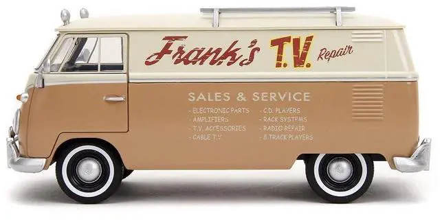 Brand new 1/24 scale diecast car model of Volkswagen Bus "WheelJack" Tan and Beige "Frank's TV Repair" and