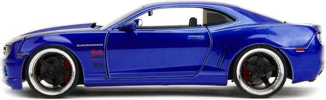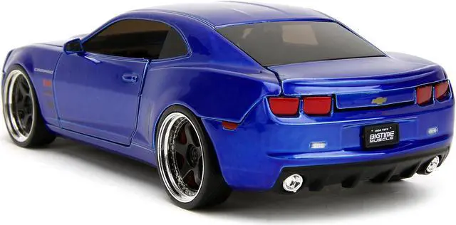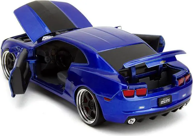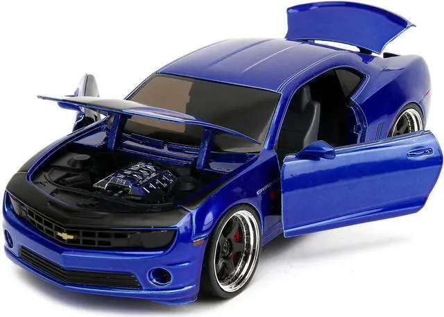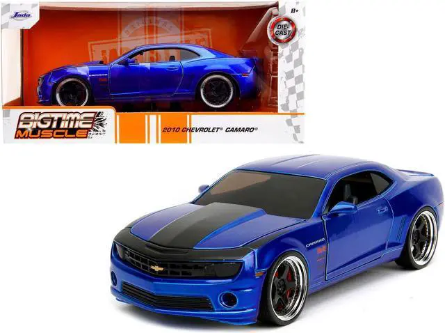 Brand new 1:24 scale diecast car model of 2010 Chevrolet Camaro Candy Blue with Black Hood "Bigtime Muscle" Series die cast model car by Jada.
