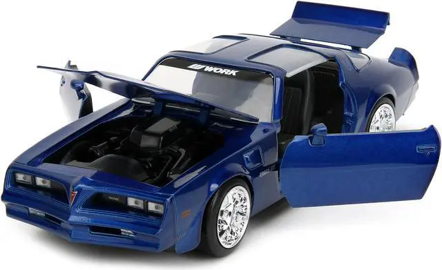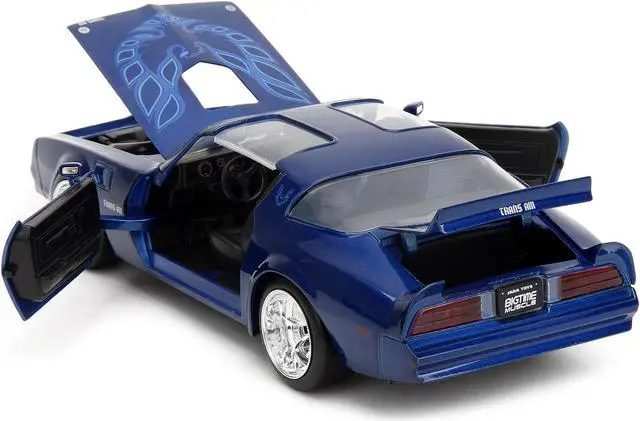 Brand new 1/24 scale diecast car model of 1977 Pontiac Firebird Trans Am Blue Metallic "Bigtime Muscle" Series die cast model car by Jada.