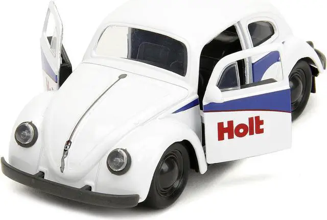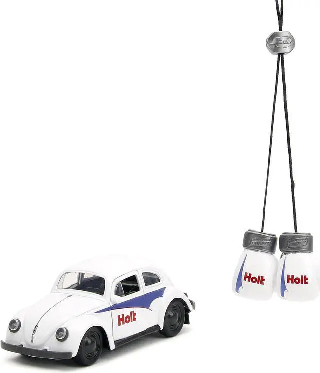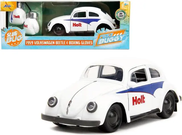 Brand new 1/32 scale diecast car model of 1959 Volkswagen Beetle "Holt" White with Blue Graphics and Boxing Gloves Accessory "Punch Buggy" Series die cast model car by Jada.