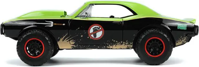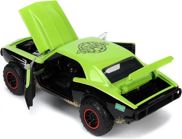 Brand new 1/24 scale diecast model of 1967 Chevrolet Camaro Offroad Bright Green and Matt Black (Dirty Version) and Raphael Diecast Figure "Teenage Mutant Ninja Turtles" "Hollywood Rides" Series die cast model by Jada.