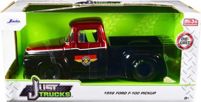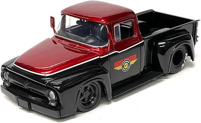 Brand new 1:24 scale diecast car model of 1956 Ford F-100 Pickup Truck "Mickey Thompson Performance Tires & Wheels" Black and Red Metallic "Just Trucks" Series die cast model car by Jada.