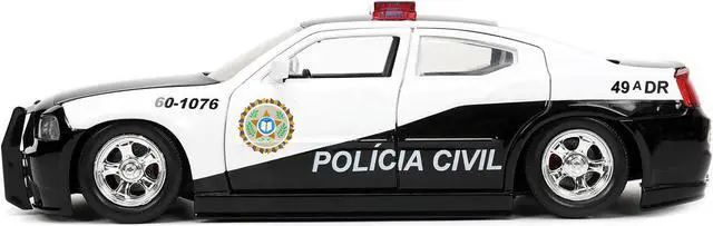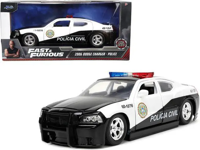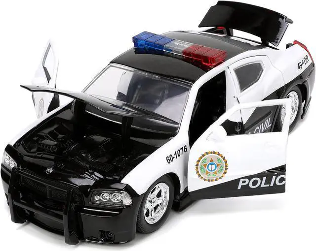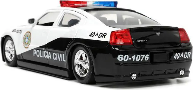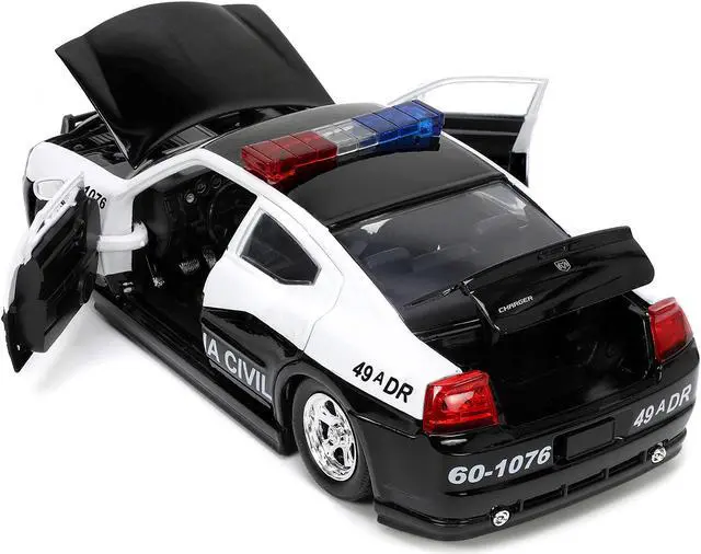 Brand new 1/24 scale diecast car model of 2006 Dodge Charger Police Black and White "Policia Civil" "Fast & Furious" Series die cast model car by Jada.