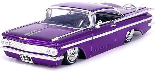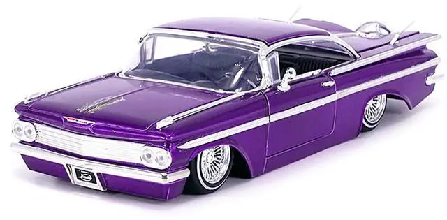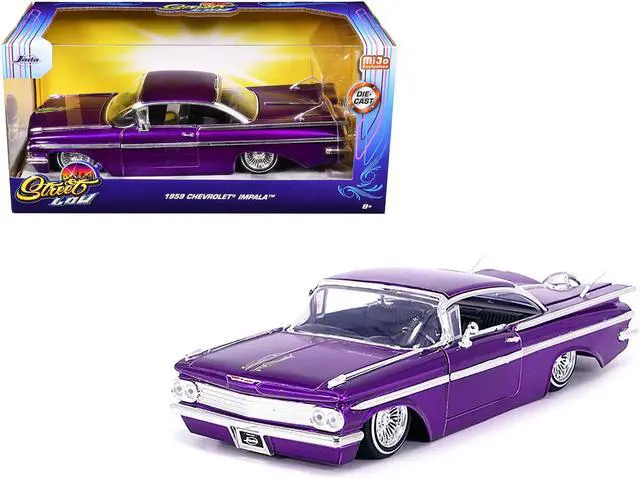 Brand new 1/24 scale diecast car model of 1959 Chevrolet Impala Lowrider Candy Purple with Wire Wheels "Street Low" Series die cast model car by Jada.