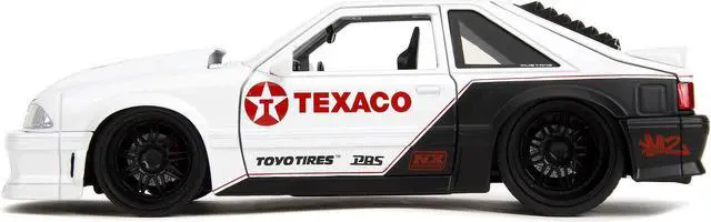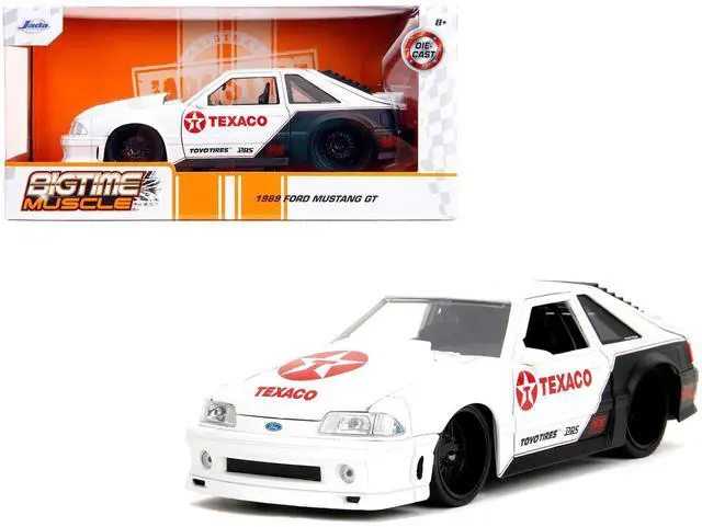 Brand new 1/24 scale diecast car model of 1989 Ford Mustang GT "Texaco" White and Matt Black with Graphics "Bigtime Muscle" Series die cast model car by Jada.