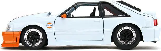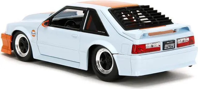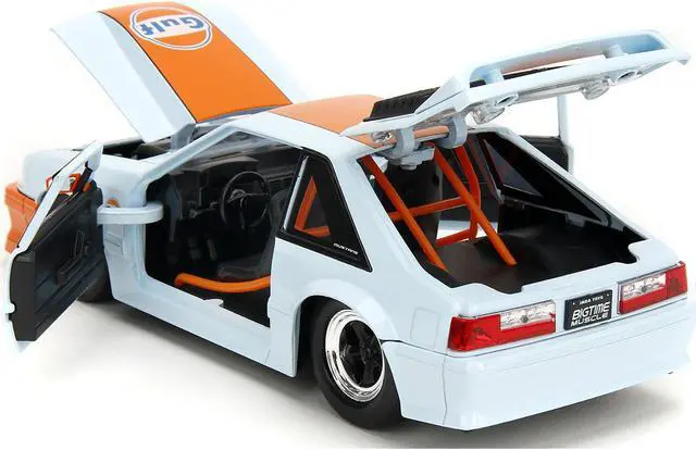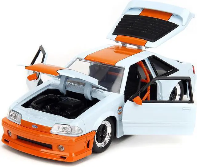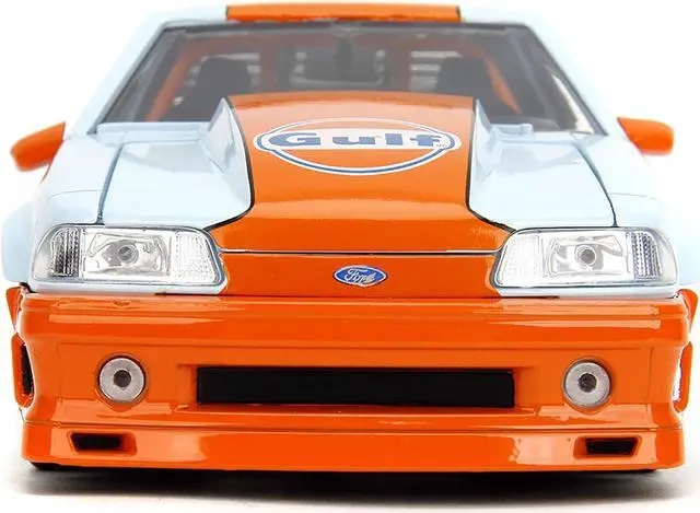 Brand new 1/24 scale diecast car model of 1989 Ford Mustang GT "Gulf Oil" Light Blue with Orange Stripe "Bigtime Muscle" Series die cast model car by Jada.