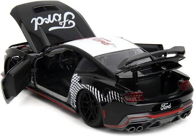 Brand new 1/24 scale diecast car model of 2024 Ford Mustang Dark Horse Black with White Top and "Mustang Horse Graphics" "Bigtime Muscle" Series die cast model car by Jada.
