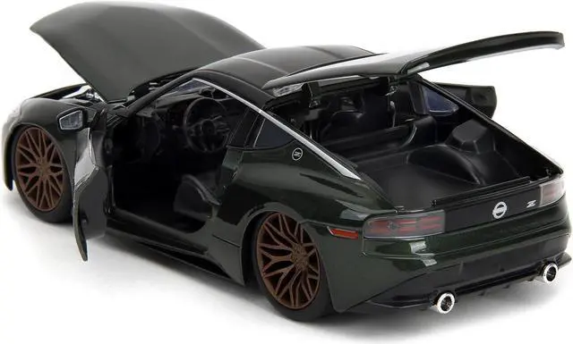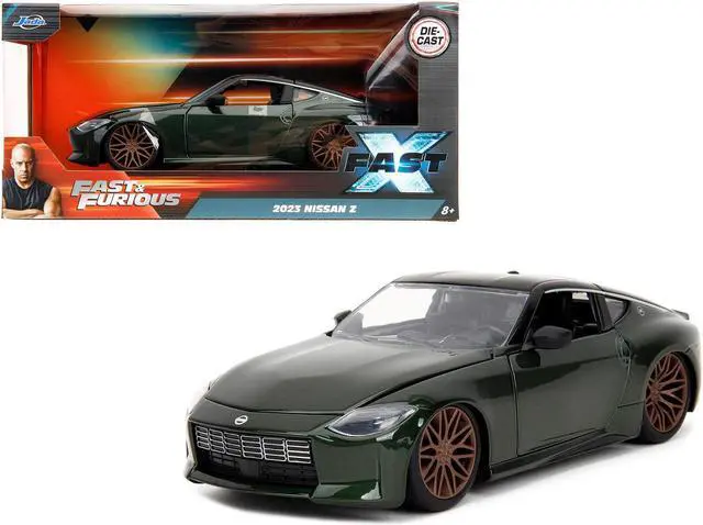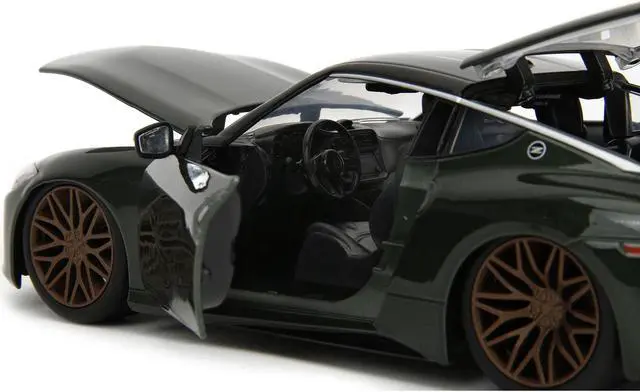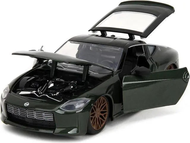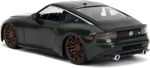 Brand new 1/24 scale diecast car model of 2023 Nissan Z Dark Green Metallic with Black Top "Fast X" (2023) Movie "Fast & Furious" Series die cast model car by Jada.