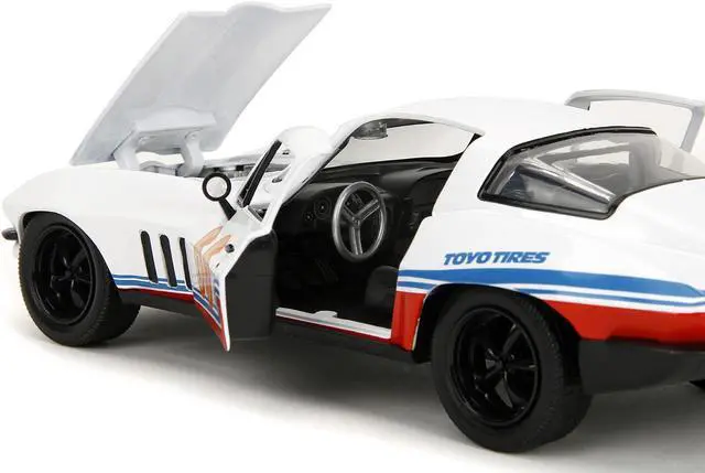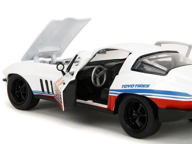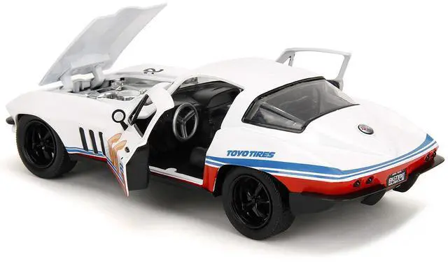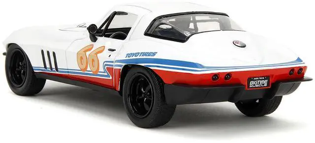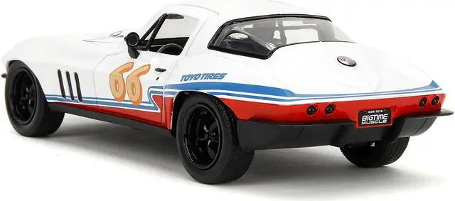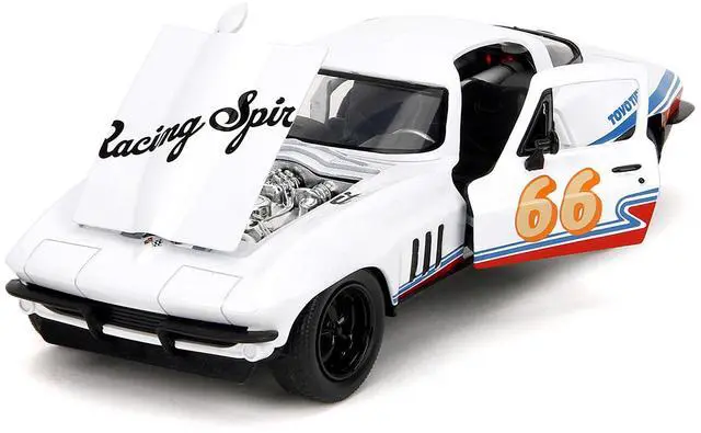 Brand new 1/24 scale diecast car model of 1966 Chevrolet Corvette #66 "Racing Spirit" White with Graphics "Bigtime Muscle" Series die cast model car by Jada.