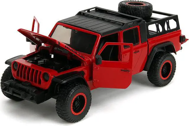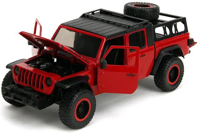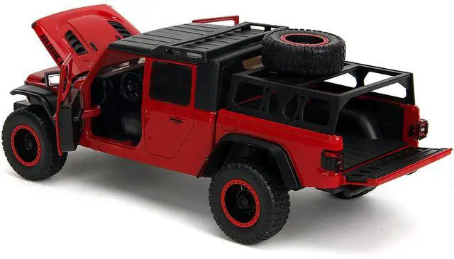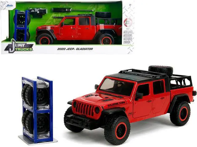 Brand new 1/24 scale diecast car model of 2020 Jeep Gladiator Rubicon Pickup Truck Red with Black Top and Extra Wheels "Just Trucks" Series die cast model car by Jada.