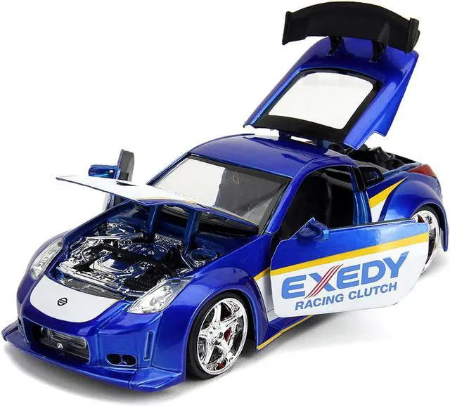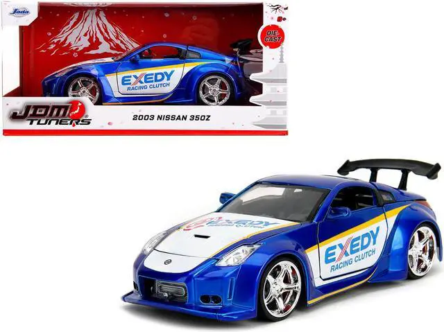 Brand new 1/24 scale diecast car model of 2003 Nissan 350Z "Exedy Racing Clutch" Candy Blue and White "JDM Tuners" Series die cast model car by Jada.