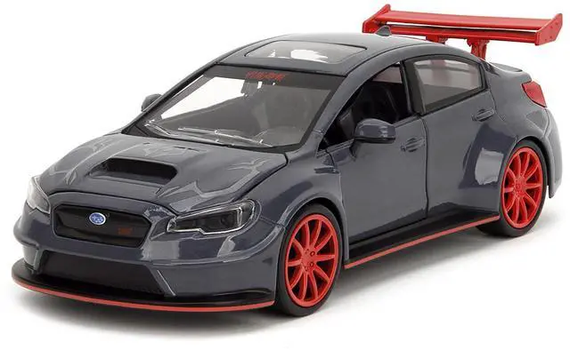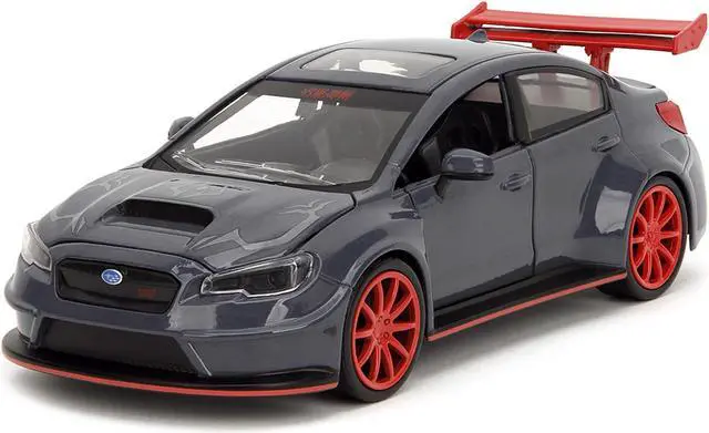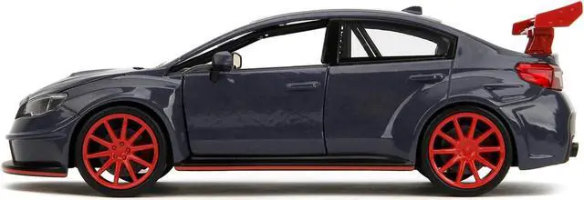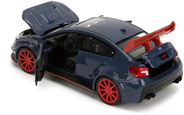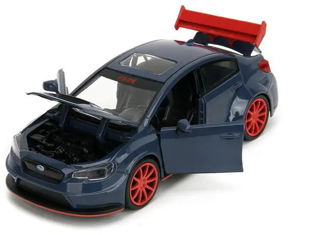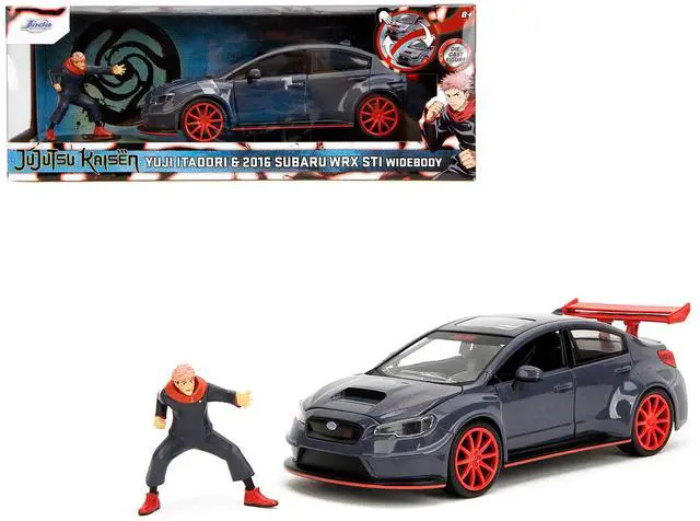 Brand new 1/24 scale diecast car model of 2016 Subaru WRX STI Widebody Dark Blue and Yuji Itadori Diecast Figure "Jujutsu Kaisen" (20202023) TV Series "Anime Hollywood Rides" Series die cast model car by Jada.
