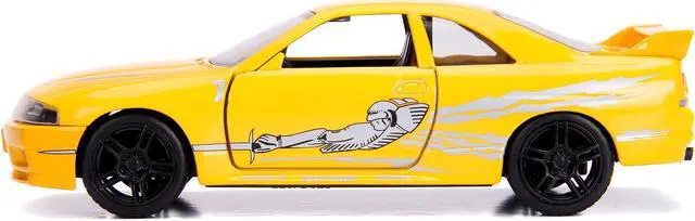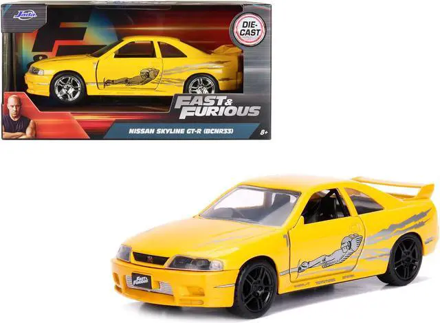 Brand new 1/32 scale diecast car model of Leon's Nissan Skyline GT-R (BCNR33) Yellow Metallic with Graphics "Fast & Furious" Series die cast model car by Jada.