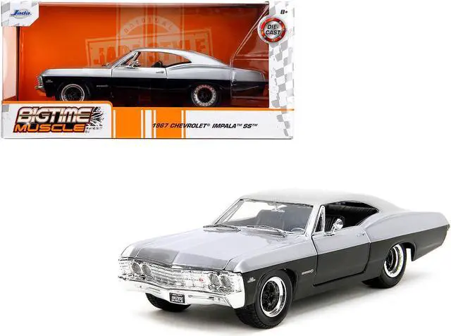Brand new 1/24 scale diecast car model of 1967 Chevrolet Impala SS Silver Metallic and Black "Bigtime Muscle" Series die cast model car by Jada.