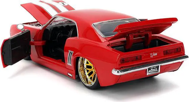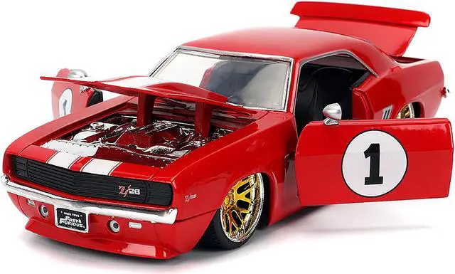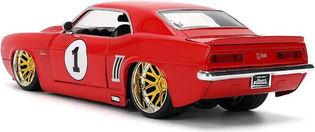 Brand new 1/24 scale diecast car model of 1969 Chevrolet Camaro #1 Red with White Stripes "Fast & Furious" Series die cast model car by Jada.