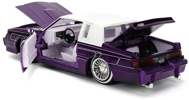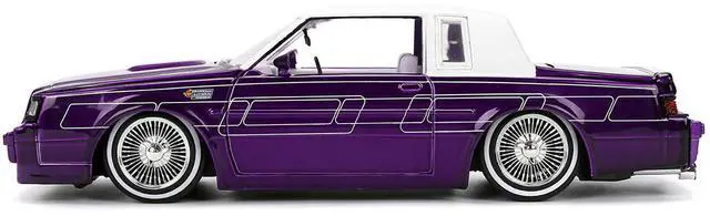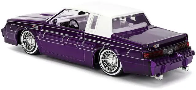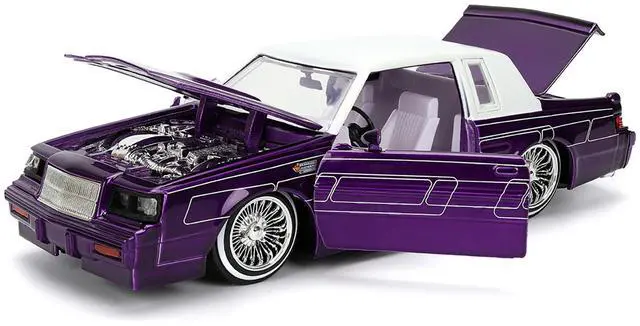 Brand new 1/24 scale diecast model car of 1987 Buick Grand National Candy Purple with Graphics and White Top and Interior "Bigtime Muscle" Series die cast car model by Jada.