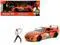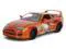 Brand new 1/24 scale diecast model of 1995 Toyota Supra Orange Metallic with Graphics and Chainsaw Man Diecast Figure "Chainsaw Man" (2022) TV Series "Anime Hollywood Rides" Series die cast model by Jada.