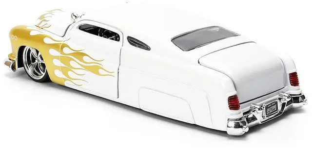 Brand new 1/24 scale diecast car model of 1951 Mercury Coupe White with Gold Flames "Bigtime Muscle" Series die cast model car by Jada.