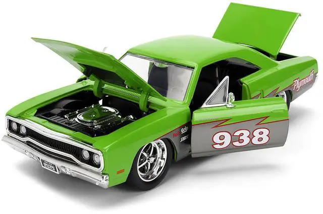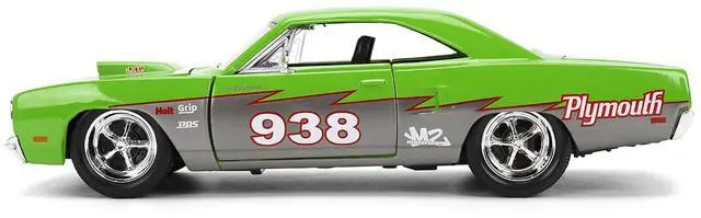 Brand new 1/24 scale diecast car model of 1970 Plymouth Road Runner #938 Green and Gray Metallic "Bigtime Muscle" Series die cast model car by Jada.