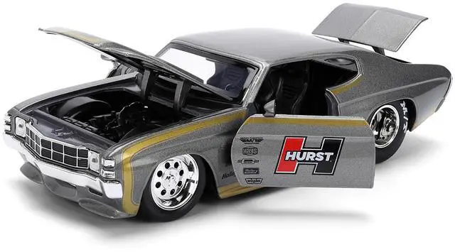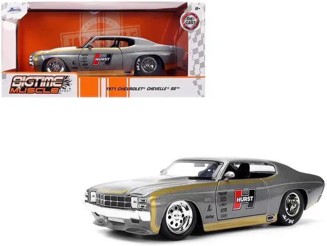 Brand new 1/24 scale diecast car model of 1971 Chevrolet Chevelle SS "Hurst" Gray Metallic with Gold Stripes "Bigtime Muscle" Series die cast model car by Jada.