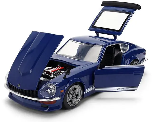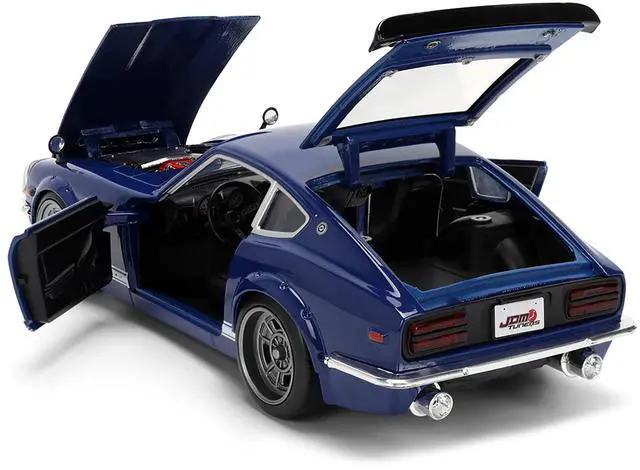 Brand new 1/24 scale diecast car model of 1972 Datsun 240Z Blue with White Stripes "JDM Tuners" Series die cast model car by Jada.