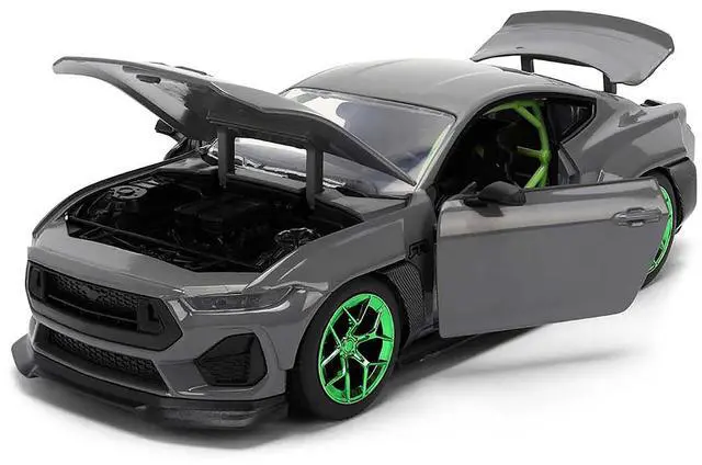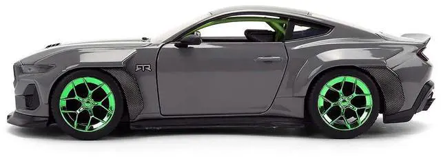 Brand new 1/24 scale diecast car model of 2024 Ford Mustang RTR Gray with Green Wheels "Bigtime Muscle" Series die cast model car by Jada.