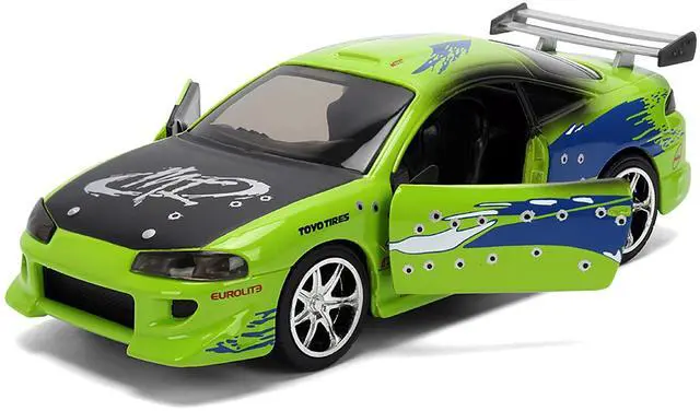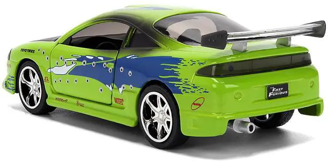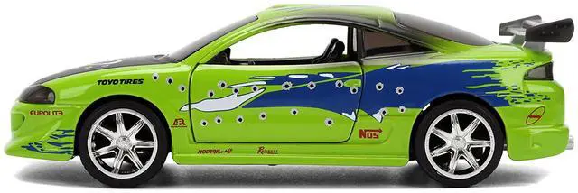 Brand new 1/32 scale diecast car model of Brian's Mitsubishi Eclipse Green with Graphics (Damaged Version) "The Fast and the Furious" (2001) Movie "Fast & Furious" Series die cast model car by Jada.