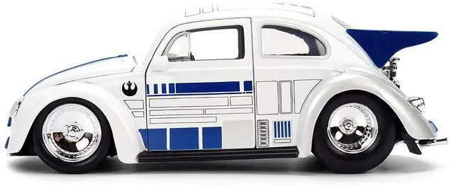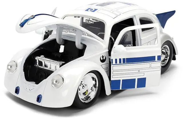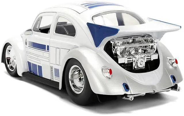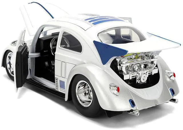 Brand new 1/24 scale diecast car model of 1959 Volkswagen Drag Beetle White with Graphics and R2-D2 Figure "Star Wars" Franchise "Hollywood Rides" Series die cast model car by Jada.