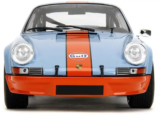 Brand new 1/18 scale diecast car model of Porsche 911 RSR "Gulf Oil" Light Blue with Orange Stripes "Pink Slips" Series die cast model car by Jada.