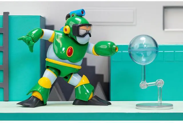 Brand new model of Bubble Man 5" Moveable Figure (Deluxe Version) with Accessories and Alternate Head and Hands "Mega Man" (1987) Video Game model by Jada.