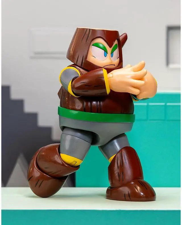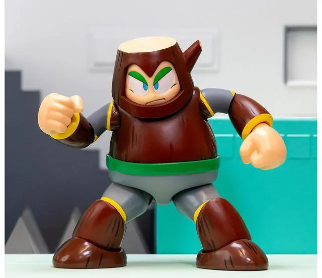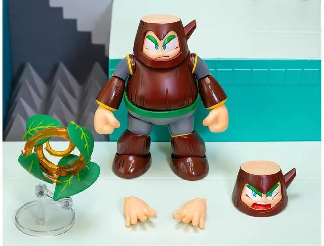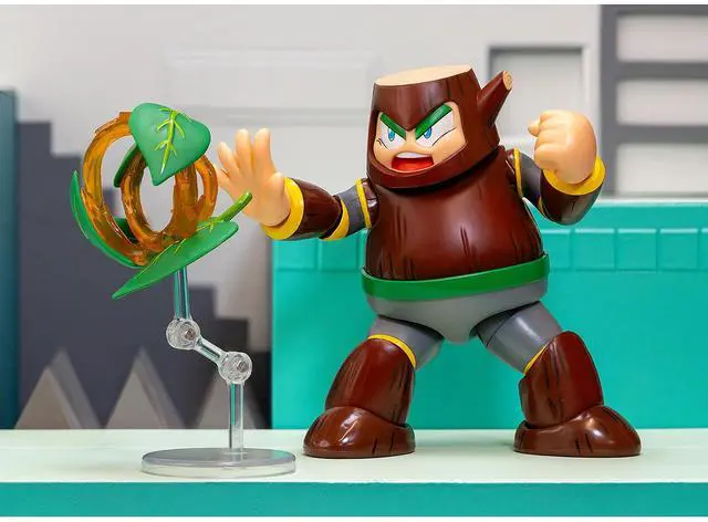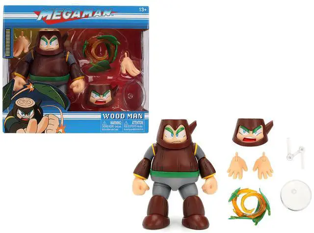 Brand new model of Wood Man 5" Moveable Figure (Deluxe Version) with Accessories and Alternate Head and Hands "Mega Man" (1987) Video Game model by Jada.