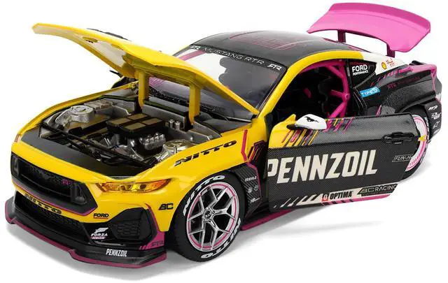 Brand new 1/24 scale diecast car model of Ford Mustang RTR #213 Ben Hobson "Pennzoil" "Formula Drift PRO Championship" (2025) with Lights "RTR Vehicles" Series die cast model car by Jada.
