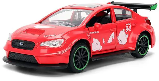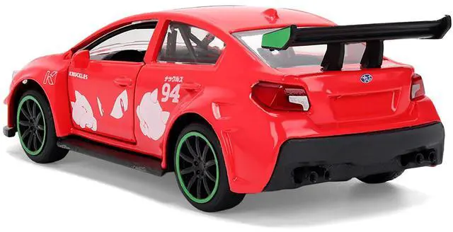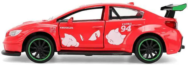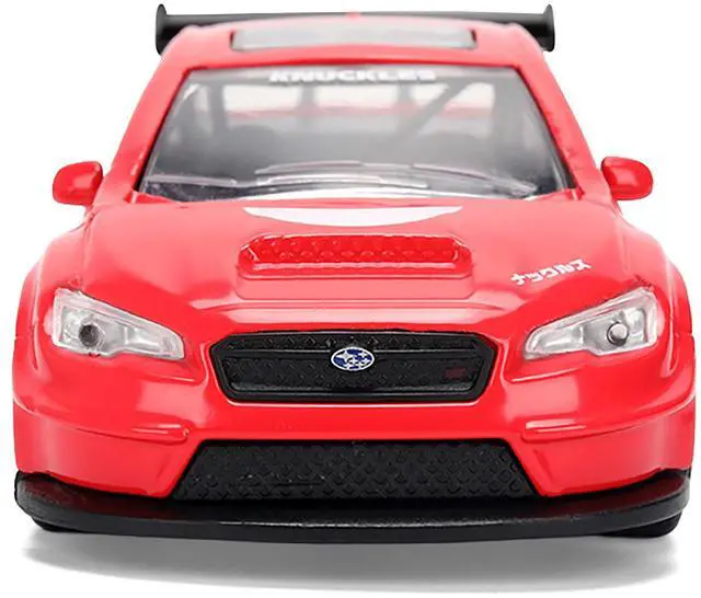 Brand new 1/32 scale diecast car model of 2016 Subaru WRX STI Red with "Knuckles" Graphics "Sonic the Hedgehog" (1991) Video Game "Hollywood Rides" Series die cast car model by Jada.