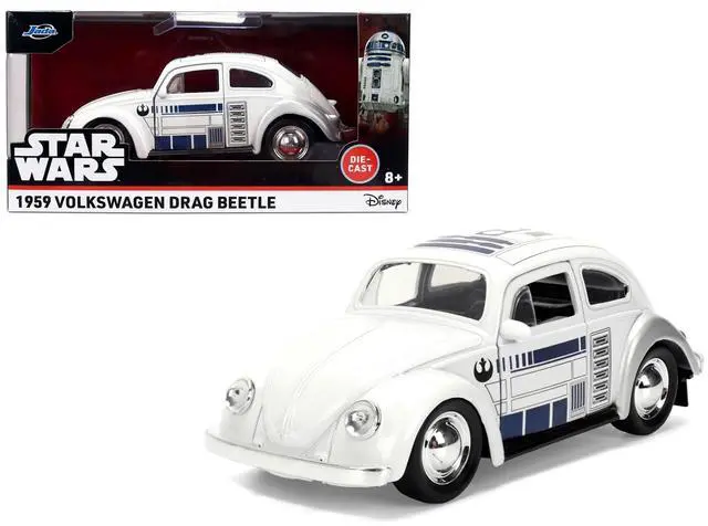 Brand new 1/32 scale diecast car model of 1959 Volkswagen Beetle "R2-D2" Livery White with Graphics "Star Wars" Franchise "Hollywood Rides" Series die cast model car by Jada.