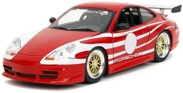 Brand new 1/24 scale diecast car model of Porsche 911 GT3 (996) Red with White Graphics "Hyper-Spec" Series die cast model car by Jada.