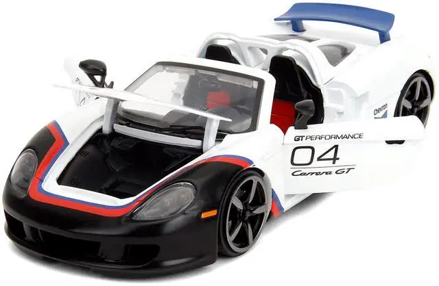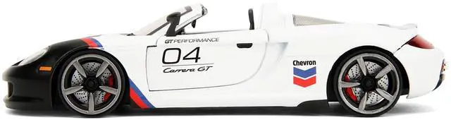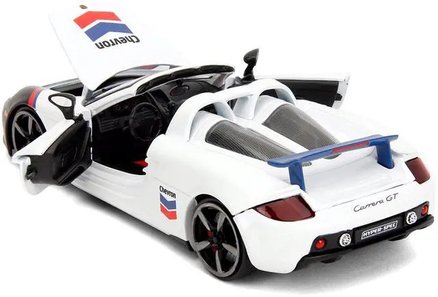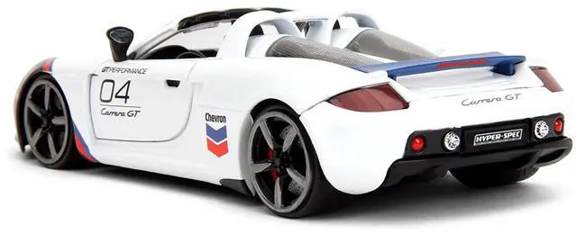 Brand new 1/24 scale diecast car model of Porsche Carrera GT Convertible #04 "Chevron" White with Graphics "Hyper-Spec" Series die cast model car by Jada.