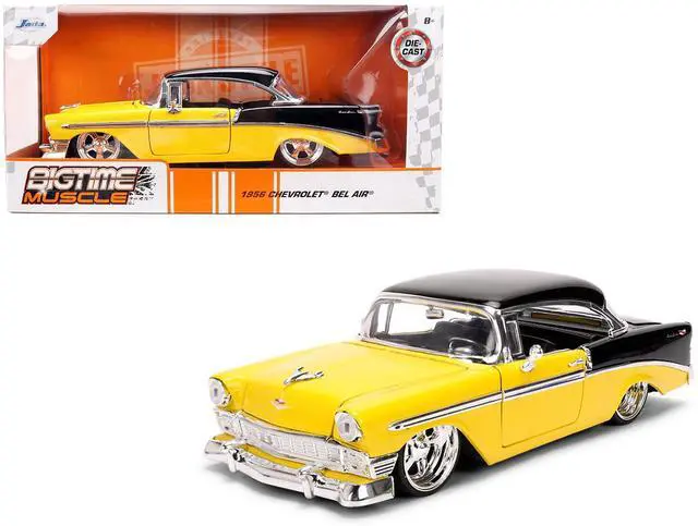 Brand new 1/24 scale diecast car model of 1956 Chevrolet Bel Air Yellow and Black "Bigtime Muscle" Series die cast model car by Jada.