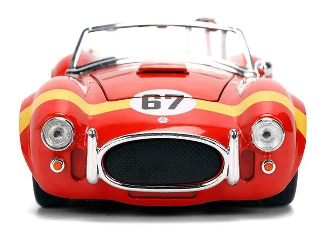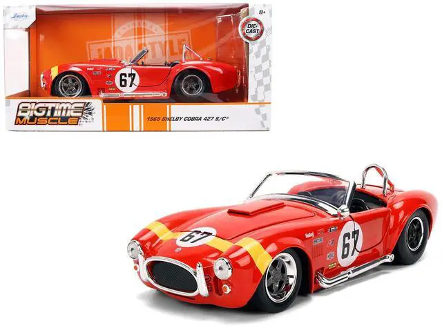 Brand new 1/24 scale diecast car model of 1965 Shelby Cobra 427 S/C #67 Red with Yellow Stripe "Bigtime Muscle" Series die cast model car by Jada.
