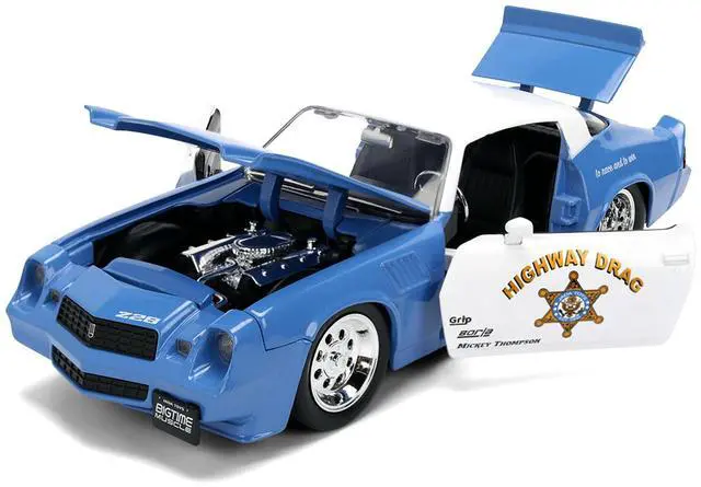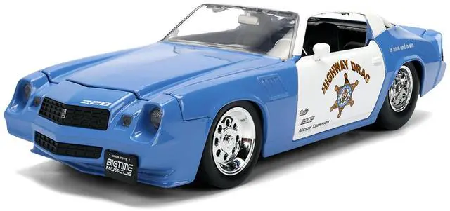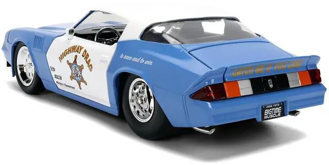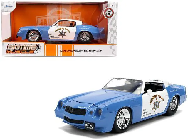 Brand new 1/24 scale diecast car model of 1979 Chevrolet Camaro Z28 Police "Highway Drag" Blue and White "Bigtime Muscle" Series die cast model car by Jada.