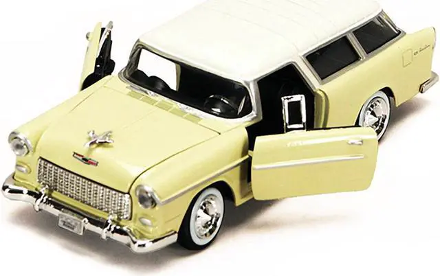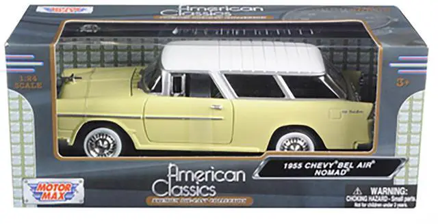 Brand new 1/24 scale diecast car model of 1955 Chevrolet Bel Air Nomad Yellow with White Top die cast model car by Motormax.