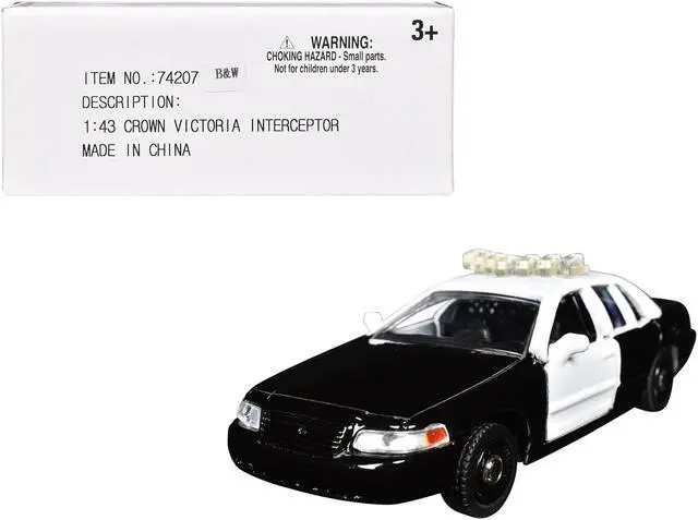 Brand new 1/43 scale diecast car model of Ford Crown Victoria Police Interceptor Black and White die cast model car by Motormax.