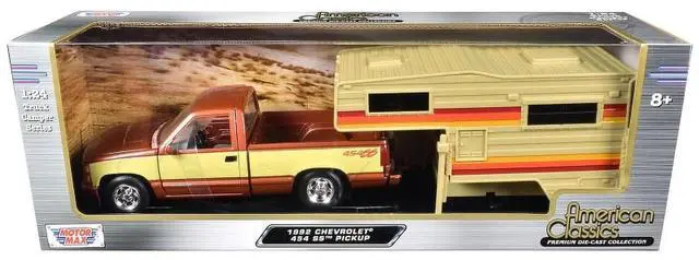 Brand new 1/24 diecast car model of 1992 Chevrolet 454 SS Pickup Truck Copper Metallic with Beige Sides with Camper Shell "American Classics" Series die cast model car by Motormax.