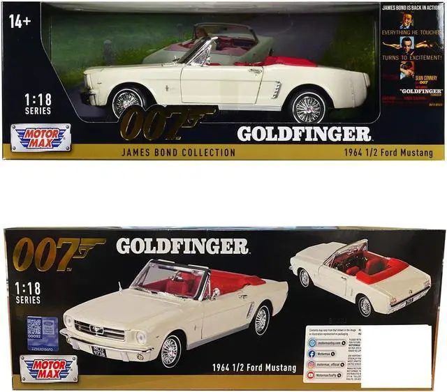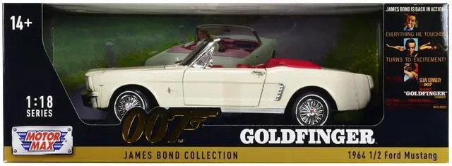 Brand new 1/18 scale diecast car model of 1964 1/2 Ford Mustang Convertible White with Red Interior James Bond 007 "Goldfinger" (1964) Movie "James Bond Collection" Series die cast model car by Motormax.