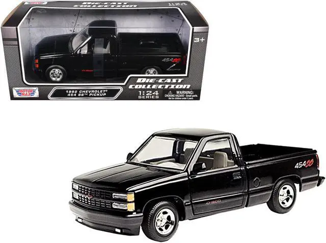 Brand new 1/24 scale diecast car model of 1992 Chevrolet 454 SS Pickup Truck Black die cast model car by Motormax.