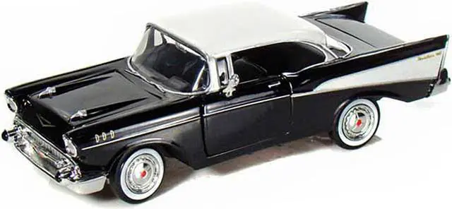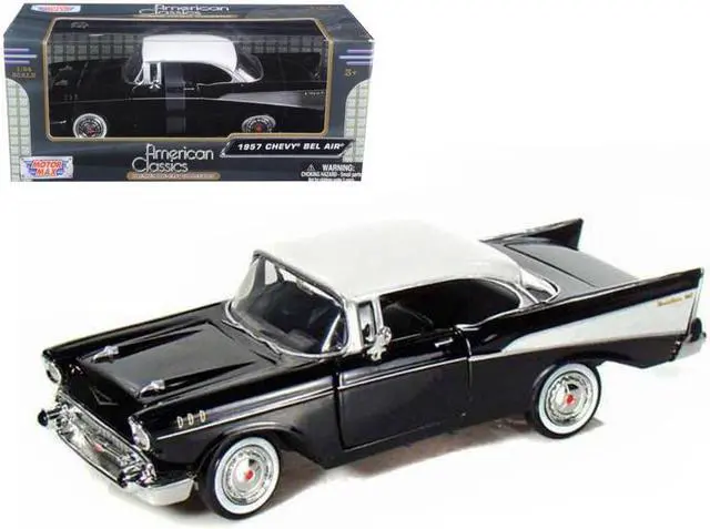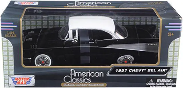 Brand new 1/24 scale diecast car model of 1957 Chevrolet Bel Air Black with White Top die cast model car by Motormax.