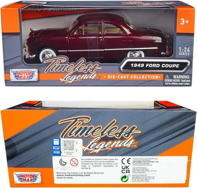 Brand new 1/24 scale diecast car model of 1949 Ford Coupe Burgundy die cast car model by Motormax.