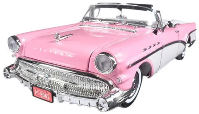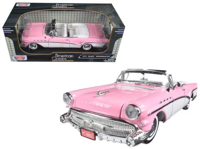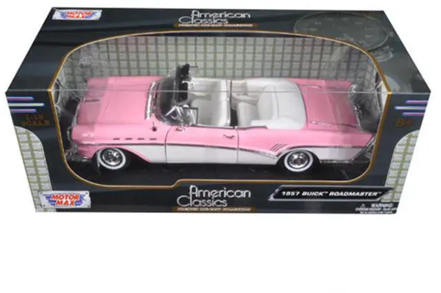 Brand new 1/18 scale diecast car model of 1957 Buick Roadmaster Convertible Pink and White die cast model car by Motormax.
