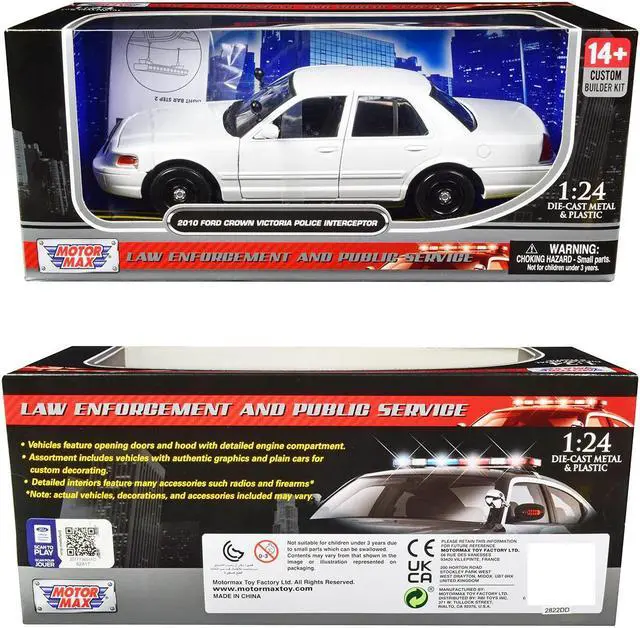 Brand new 1/24 scale diecast car model of 2010 Ford Crown Victoria Police Interceptor Unmarked White "Custom Builder's Kit" Series die cast model car by Motormax.